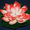 10" round Solar battery powered lily. looks great and adds a new dimensiuon to a pond at night time. Recharges during the day.
